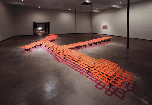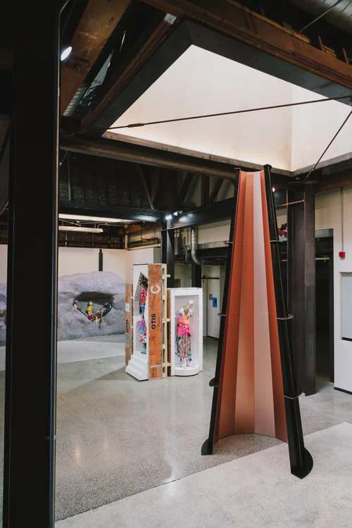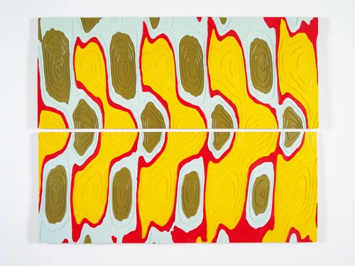 Private commission with Skanska USA for the lobby of a new office tower in Seattle, WA, 2021. Partnering with Hilti, a concrete-scanning device for detecting the rebar in the wall on which they are mounted provided the source imagery for these tapestries that were woven at a mill in Flanders Belgium.